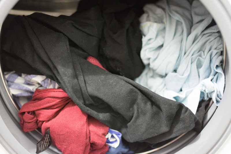 When clothes are too tightly packed, they can’t rinse properly. Dye that should wash away stays trapped in the load.